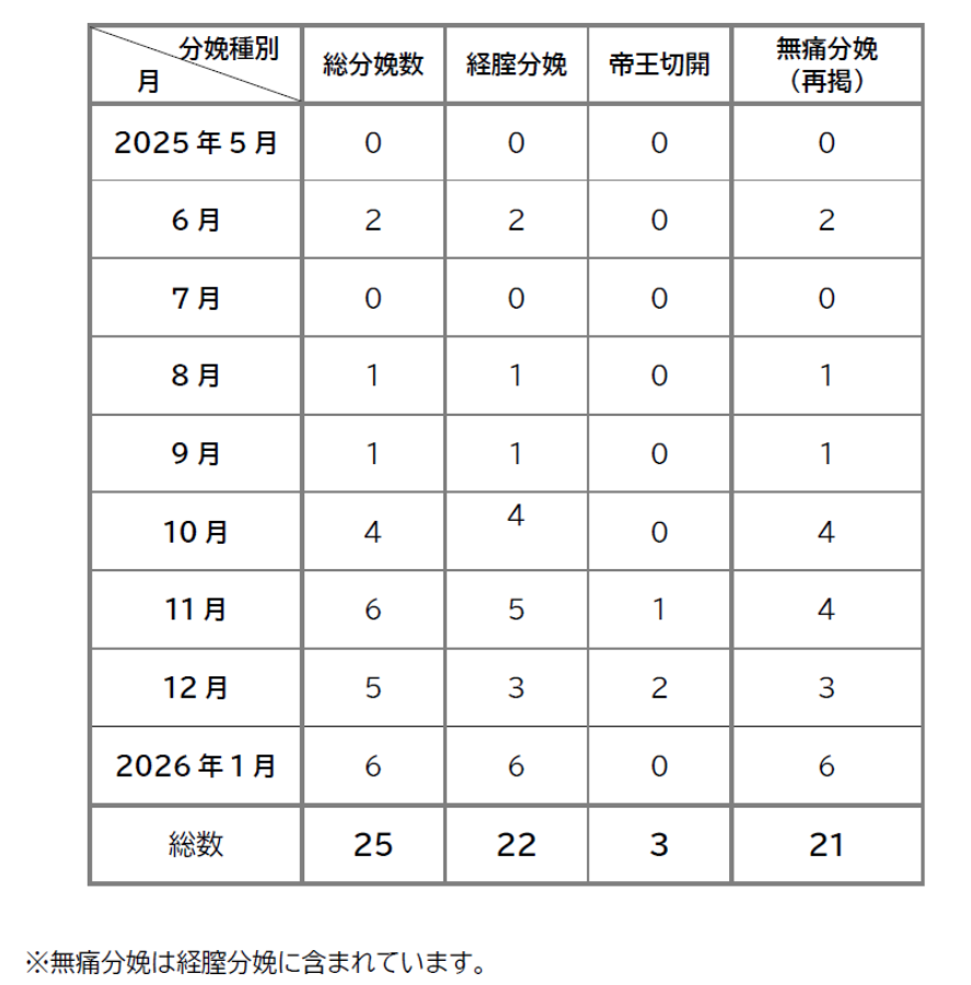 今後も分娩件数や内容に応じて、随時情報を更新してまいります。